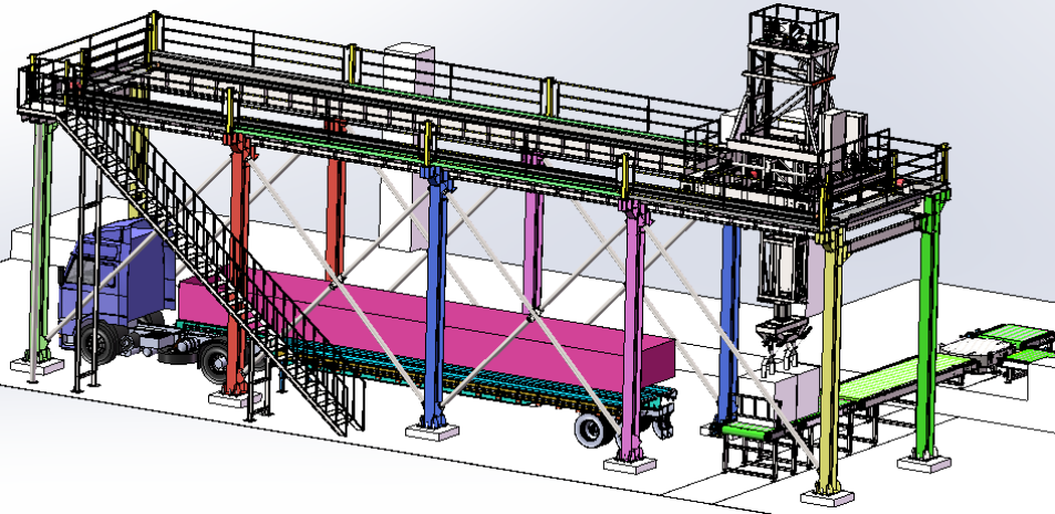 TAL-2T-3M-60系列全自動智能裝車機可以滿足每小時不低于50包/時的裝車工作,實現(xiàn)智能化裝車,可以適用各種敞篷車型、適用于單袋系噸包包裝袋的裝車要求。