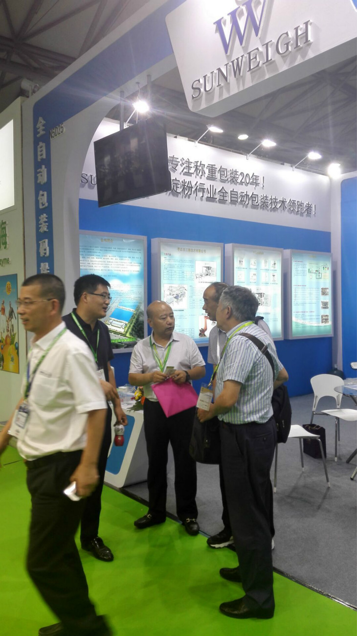 棗莊市三維技術(shù)有限公司自1996年開(kāi)始研發(fā)生產(chǎn)包裝秤設(shè)備,20年的研發(fā)生產(chǎn)積累了豐富的經(jīng)驗(yàn),同時(shí)也為公司立足于包裝秤行業(yè)奠定了基礎(chǔ)。本屆世界淀粉產(chǎn)業(yè)大會(huì)公司不僅帶來(lái)了淀粉定量包裝秤、高位碼垛機(jī)、碼垛機(jī)器人、淀粉自動(dòng)上袋機(jī)等產(chǎn)品,更是大力展示了公司的明星產(chǎn)品淀粉全自動(dòng)包裝秤,展會(huì)一開(kāi)始就吸引了大量的參展客戶駐足。中間有老客戶,更多的是新客戶的咨詢絡(luò)繹不絕,更有外國(guó)客商商談合作細(xì)節(jié)。