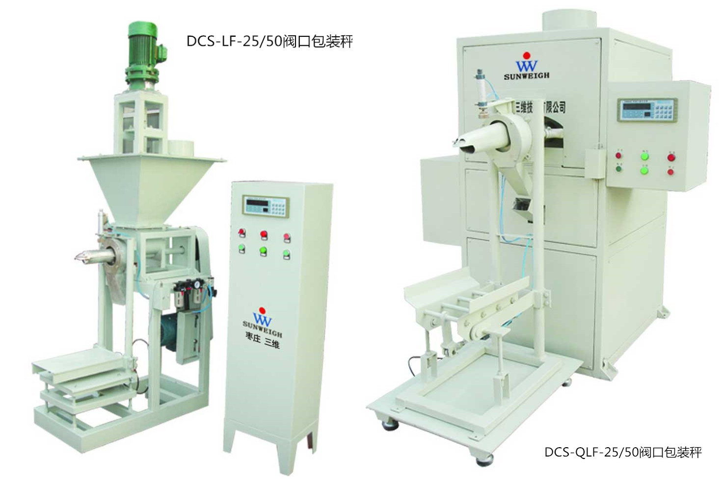 DCS-LF-25/50閥口包裝秤和DCS-QLF-25/50閥口包裝秤是棗莊三維生產(chǎn)的主打產(chǎn)品。閥口式定量包裝秤是集自動計量、灌裝、封包于一體,不需縫口機(jī)縫包的包裝機(jī);并采用閥口式包裝工藝,減少了粉塵外溢;高速處理控制儀表及數(shù)字變頻技術(shù),確保了極高的計量準(zhǔn)確度。