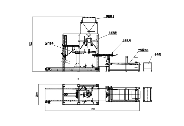 全自動(dòng)機(jī)器上袋氧化鋁噸袋包裝機(jī)主要機(jī)構(gòu):氧化鋁空袋輸送機(jī)構(gòu)、自動(dòng)上袋機(jī)構(gòu)、氧化鋁自動(dòng)稱量機(jī)構(gòu)、氧化鋁自動(dòng)灌裝機(jī)構(gòu)、自動(dòng)熱合封口、自動(dòng)噴碼打印、氧化鋁自動(dòng)輸送機(jī)構(gòu)。簡(jiǎn)略圖紙如下: