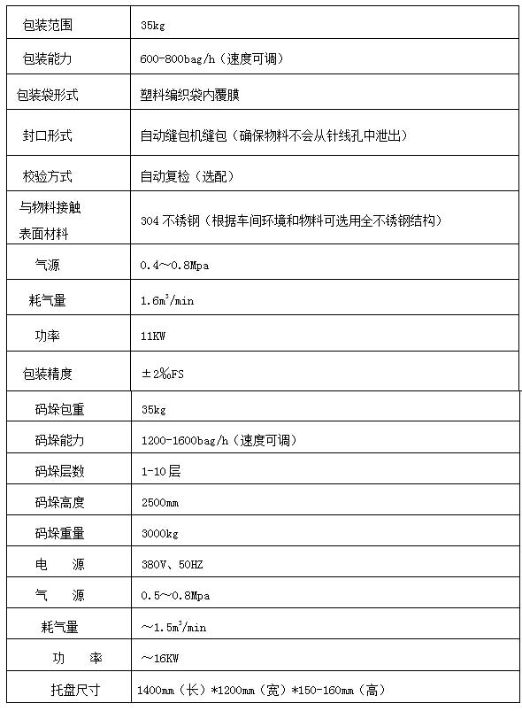 復(fù)合肥全自動包裝高位碼垛生產(chǎn)線技術(shù)參數(shù)